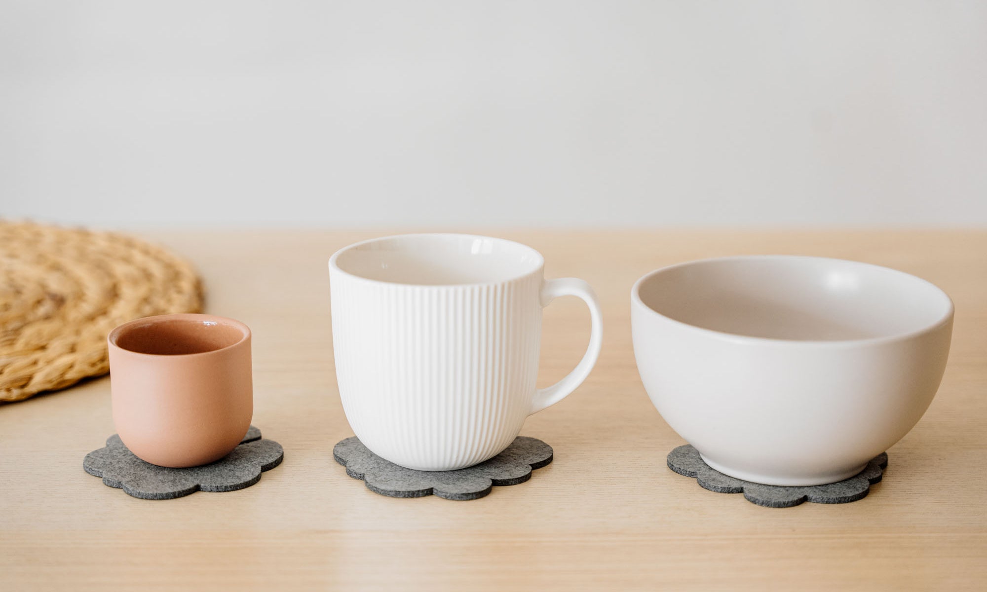 Díky minimalistickému a modernímu designu se podložky pod sklenice z ovčí plsti bez problémů hodí do každého interiéru. Jednoduchá dřevěná konstrukce v kombinaci s neutrálními tóny podložek pod sklenice vytváří nadčasovou estetiku, která se krásně hodí do moderního i rustikálního prostředí.