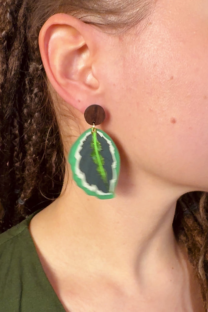 Vstupte do světa elegance inspirované přírodou s našimi náušnicemi Calathea Medallion. Tyto úžasné náušnice inspirované podmanivými křivkami a zářivými odstíny rostliny Calathea Medallion nabízí nositelné umělecké dílo, pečlivě ručně vyrobené v našem rodinném studiu. Tyto náušnice jsou ideální pro milovníky módy a přírody a kombinují výrazný design s každodenním pohodlím, díky čemuž jsou dokonalým doplňkem pro ty, kteří oceňují jedinečnost a kvalitu.