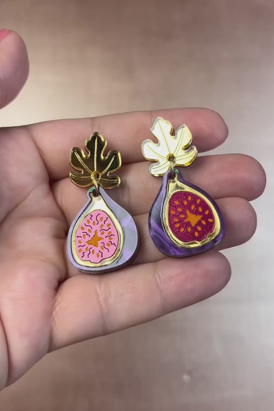 Náušnice Fig potěší smysly svými živými fialovými odstíny, propracovanými růžovými vnitřky připomínajícími fíkové semínka a lesklými zlatými listy. Tato výrazná kombinace odvážných barev a uměleckých detailů vytváří svěží, sofistikovaný doplněk, který dělá dojem bez jediného slova. Ať už je zkombinujete s koktejlovými šaty nebo oblíbenými džínami a blůzou, bez problémů se přizpůsobí jakémukoli stylu.