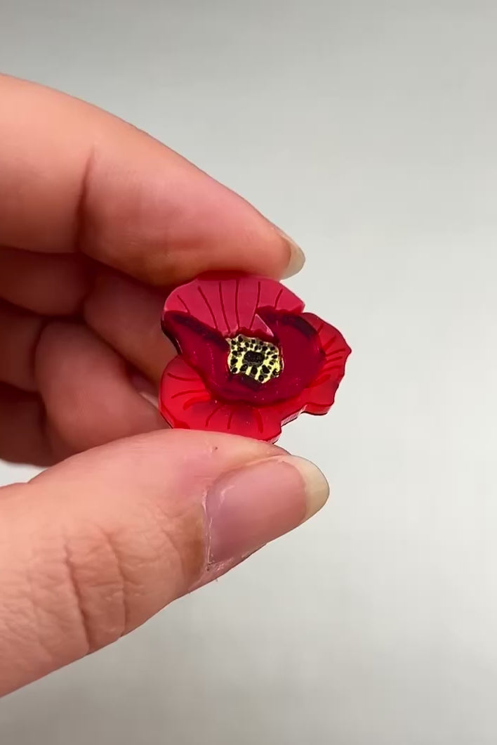 Dodejte svému outfitu nádech elegance s pinem s červeným květem vlčího máku. Ručně vyrobený, zářivý a všestranný - ideální pro milovníky přírody a módní nadšence!
